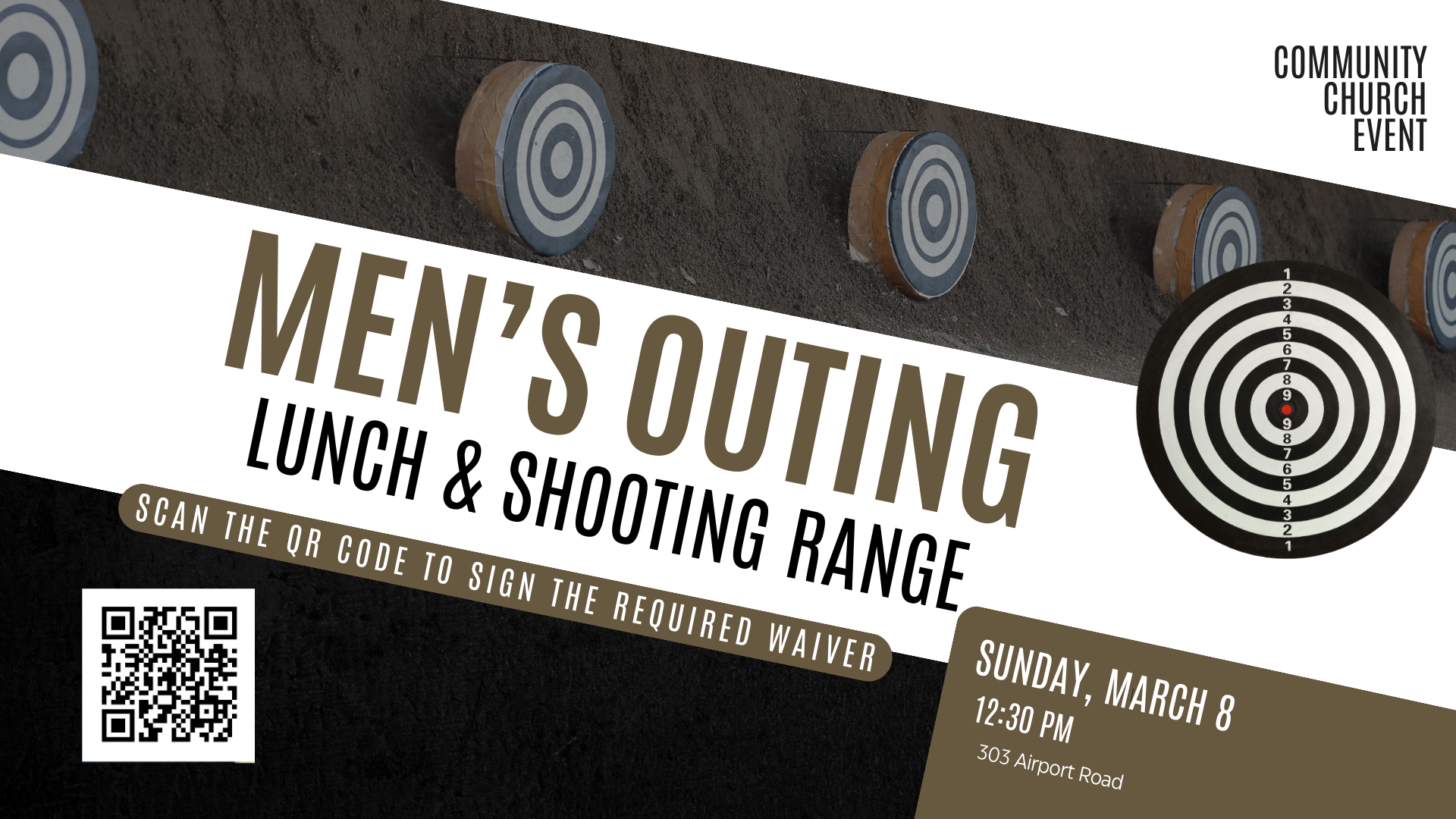Back to All Events Community Church Men's Event Sunday, March 8, 2026 12:30 PM 2:30 PM Riverstone Church 2700 State Street Bismarck, ND, 58503 United States (map) Google Calendar ICS Community Church men are invited to bring a lunch and head to the Personal Defense Center on 303 Airport Road for an afternoon of fellowship and shooting. Please fill out the waiver at: https://www.personaldefensecenternd.com/