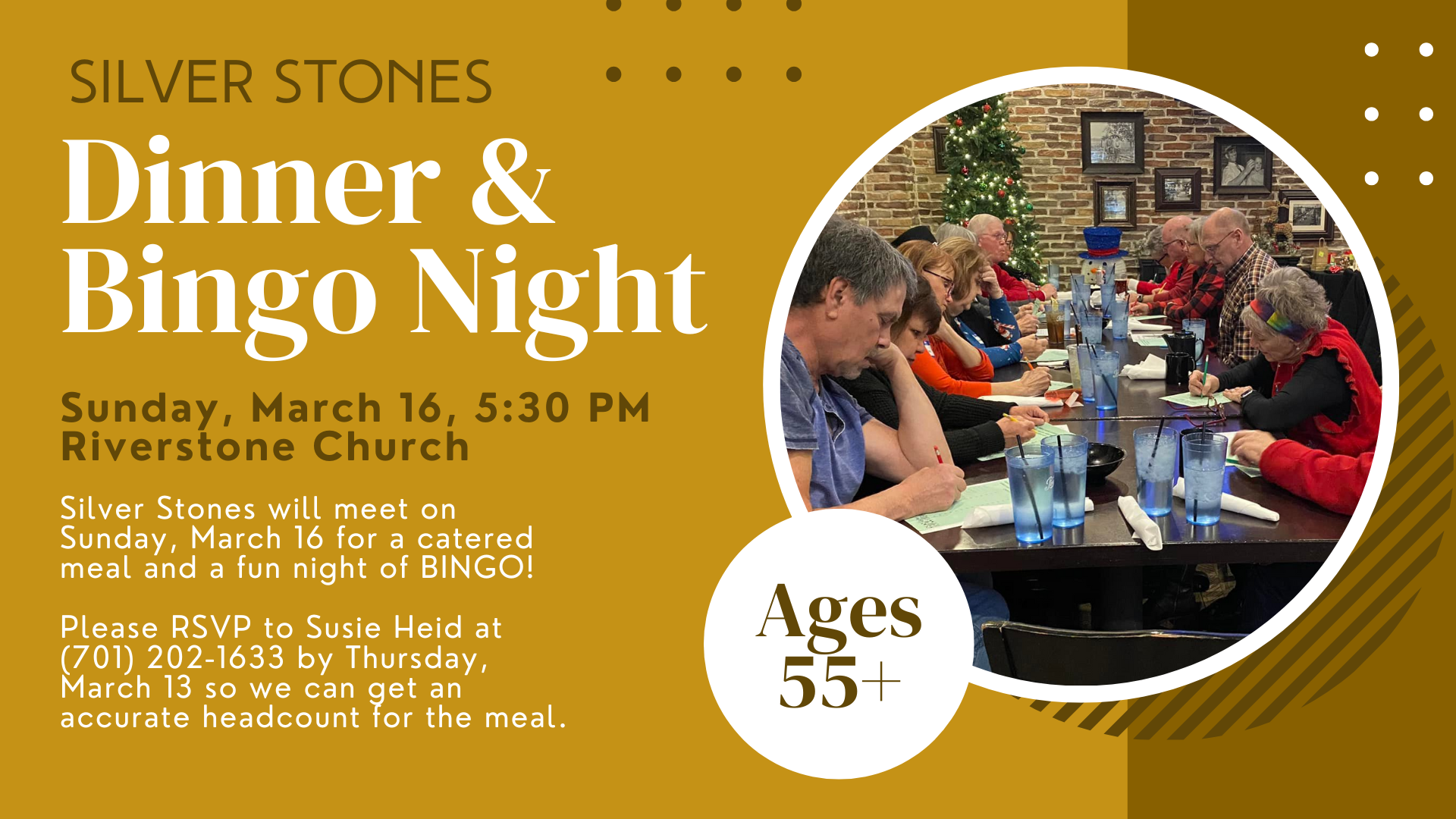 We invite you to join us for an evening filled with laughter and connection at our Silver Stones gathering on Sunday, March 16! This special event promises to be an experience where we can come together in fellowship and share in the joy of companionship.